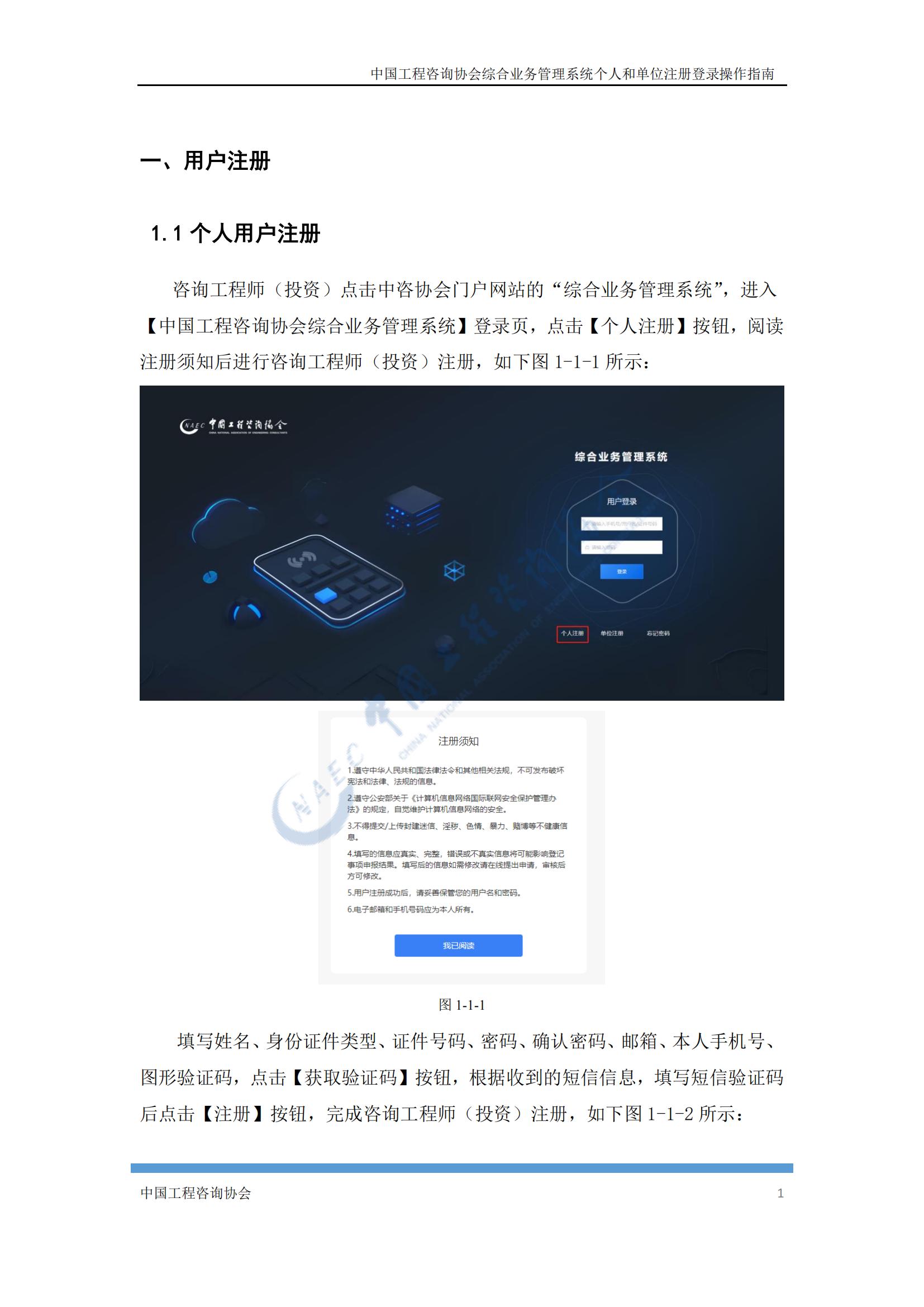 【概要描述】中国工程咨询综合业务管理系统个人和单位注册登录指南;系统可使用操作系统环境为 Windows7 及以上版本,推荐操作系统版本:Windows10;系统可使用浏览器版本为 Microsoft Edge、Google Chrome、Firefox、360 浏览器等,推荐浏览器版本:Microsoft Edge 或 Google Chrome。